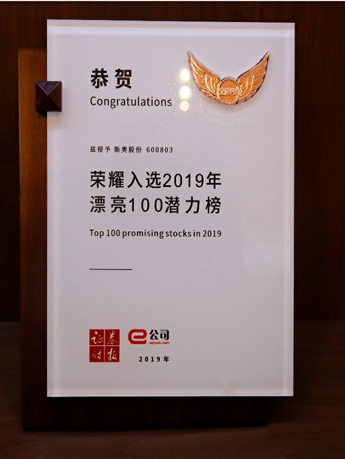 2019年,在证券日报评选活动中荣耀入选2019年漂亮100潜力榜。